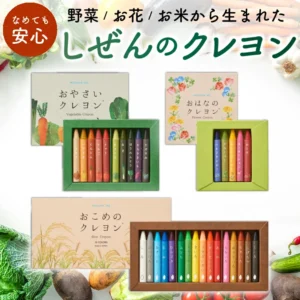 このクレヨンは米ぬかをアップサイクルした米油とライスワックスをベースに、規格外品や端材など市場に流れない野菜や果物を微粉末加工して配合した、優しい色合いが特長のおやさいクレヨンになっているそうです。