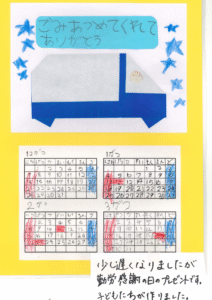 いつも収集でお世話になっている保育園の子どもたちから、心のこもった「手づくりカレンダー」をいただきました。